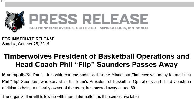 The league, thankfully, hasn’t been the same since. And it will not be the same without Flip Saunders. He will be missed.