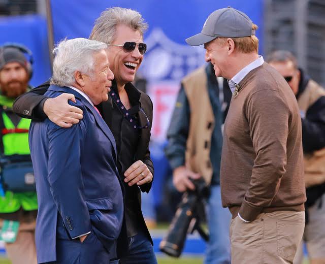 Still, it had to be an awkward talk between Goodell and the Krafts, since the commissioner reopened the deflate-gate wound when the NFL filed its appeal of a judge's ruling to overturn Tom Brady's four-game suspension. At least New Jersey native and Bill Belichick buddy Jon Bon Jovi was there to lighten the mood.