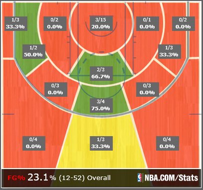 The story of the night was undoubtedly the Celtics' offensive first-half struggles and second-half resurgence. A great deal of those early issues can be explained by the Hawks' excellent defense. Although they lack a nationally recognized elite defender like Kawhi Leonard or Draymond Green, the Hawks boasted the NBA's best defense by points allowed per possession since December 15. The Celtics struggled to get good shots anywhere and couldn't make them even when they did. The first-half shot chart is not pretty:
