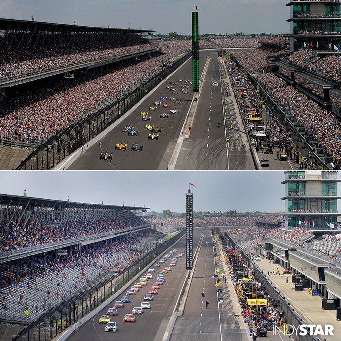 How much a difference two months makes… #Indy500 vs. #Brickyard400. 📷: @MattKryger pic.twitter.com/heT0ps2cwb