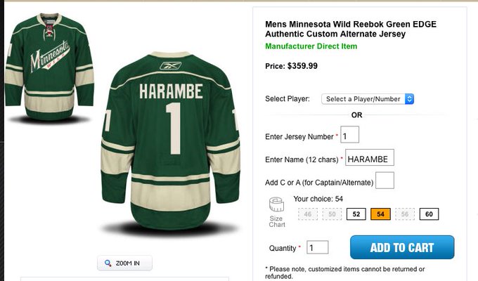 So if you wanted that “Harambe” jersey, it’s off to the knockoff market for you.