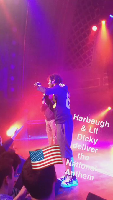 Dicky tweeted earlier in the day that he had a “productive meeting” with Harbaugh that involved some “scheme changes.” It looks like the two decided to install some patriotism to the setlist.