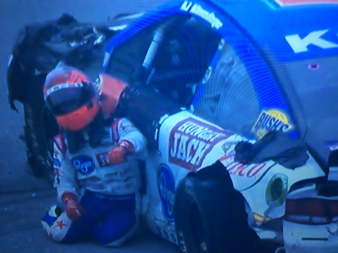 Chris Buescher (34) wrecks during the NASCAR Talladega auto race at Talladega Superspeedway, Sunday, May 1, 2016, in Talladega, Ala. (AP Photo/Greg Mc...The drivers were wrestling with more immediate concerns. Both Kenseth and Patrick allowed that they were a little nervous in the long instants before their cars collided with the wall. Kenseth said he prayed, while Patrick just closed her eyes ... until the fire started in the car, that is.
