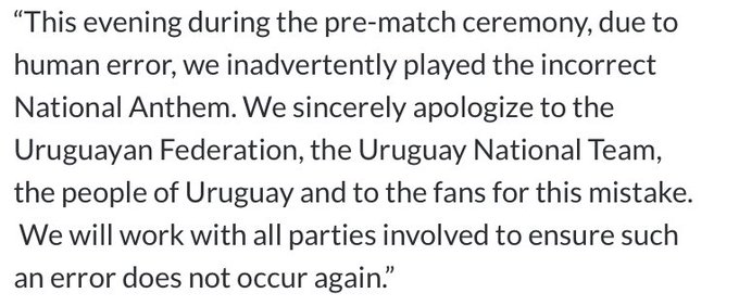 Copa America Centenario tweeted an apology from the local organizing committee in Glendale during halftime of the Mexico-Uruguay game.