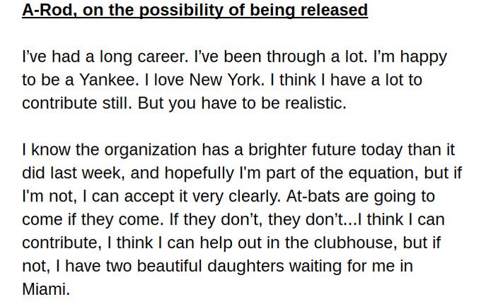 A-Rod says he knows the organization has a brighter future because of recent trades, can accept not being in plans. pic.twitter.com/MD597YMw9M
